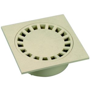 Siphon Limatec en acier inox EN 1.4301 100 x100 mm avec prise de terre, hauteur 34 mm, sortie verticale diamètre 40 mm, écoulement 0.30 l/s env., garde d’eau 15 mm, rosette libre à petits orifices de sécurité diamètre 8 mm résistant à une charge répartie de 1.3 kN